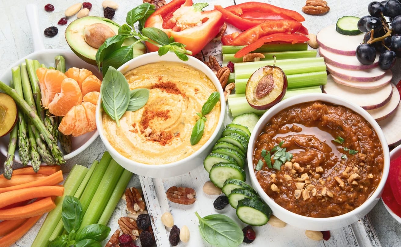 - Place sticks and hummus on a plate (~one tablespoon of hummus per large carrot or celery stick).