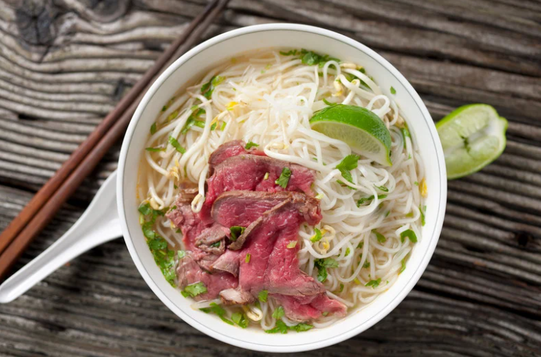 - Phá» BĂČ: An iconic beef noodle soup. Clear, aromatic broth is achieved by simmering beef bones, charred onion and ginger, and spices (star anise, cinnamon) for many hours. Itâs served over flat rice noodles with thinly sliced rare beef and brisket, then piled high with fresh bean sprouts, Thai basil, sawtooth herb, and a wedge of lime. A dash of hoisin and sriracha to taste, and you have Vietnam in a bowl.